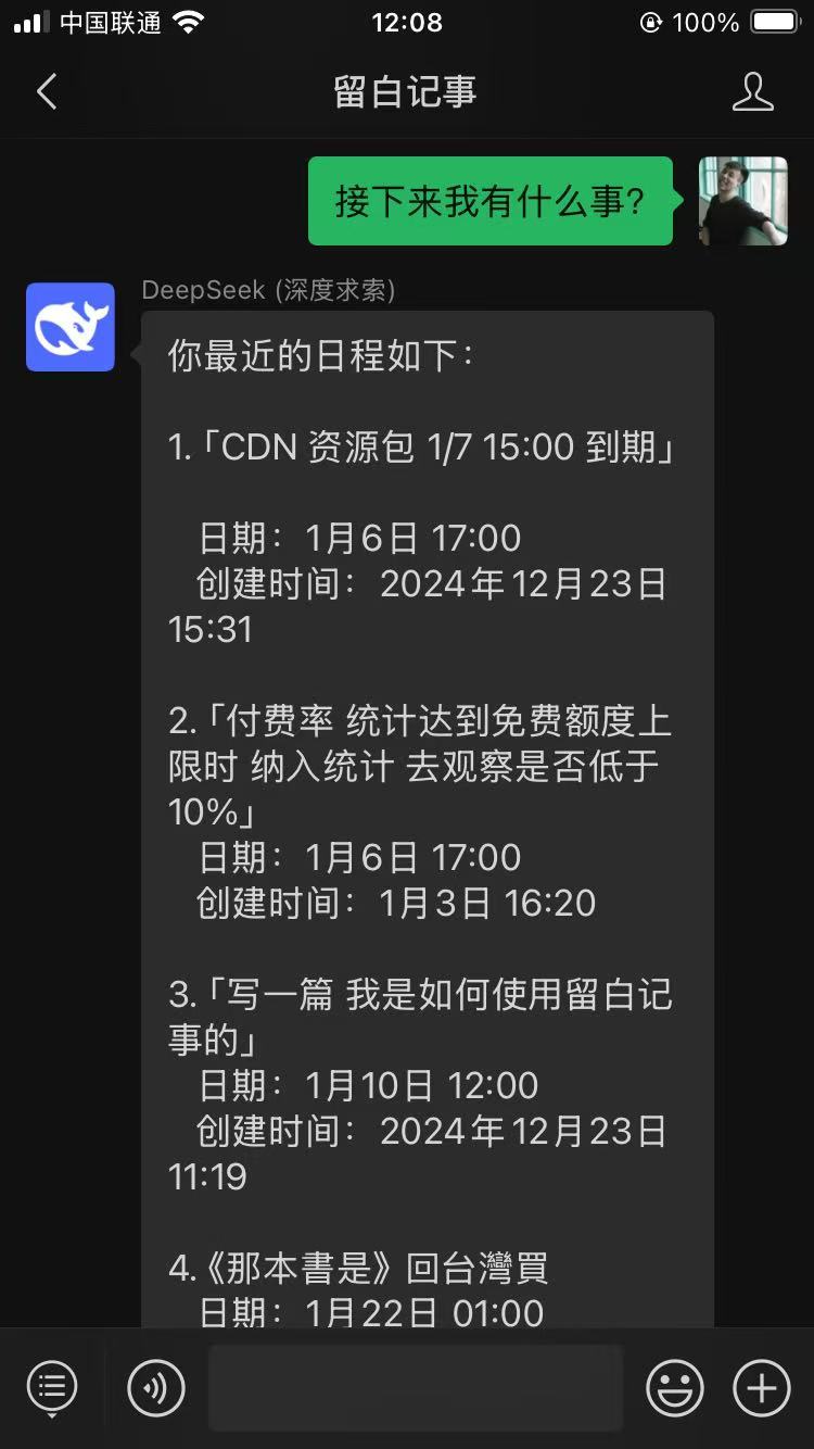 让 DeepSeek 直接在微信上管理你的笔记、任务、日程和待办清单!